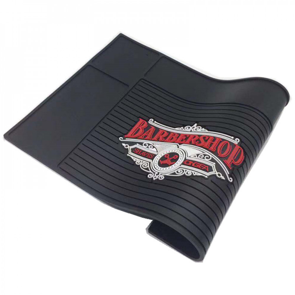 Резиновый коврик позволяет разместить парикмахерский инструмент, чувствительный к механическим повреждениям, обеспечивает надежную его фиксацию на рабочем столе парикмахера. Отлично подходит для организации рабочего места парикмахера. Позволяет разместить все основные инструменты парикмахера: ножницы, машинку, фен. Благодаря своим свойствам коврик позволяет иметь все инструменты под рукой, при этом защищает их от повреждений и грязи. Фирменный логотип прекрасно украсит ваш салон красоты или барбершоп.