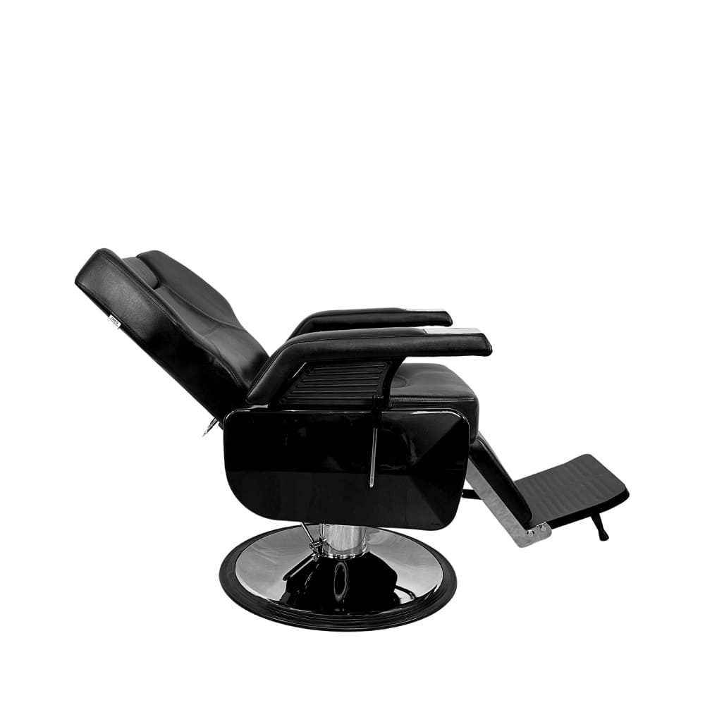 Широкое сидение с массивными подлокотниками позволит клиенту максимально расслабиться во время бритья и стрижки. Кресло дополнено большой подножкой с мягкой подушкой, что обеспечит комфорт ногам клиента.