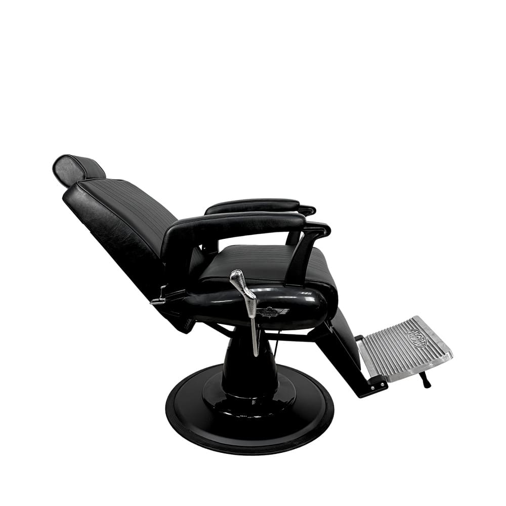 Широкое сидение с массивными подлокотниками позволит клиенту максимально расслабиться во время бритья и стрижки. Кресло дополнено большой подножкой с мягкой подушкой, что обеспечит комфорт ногам клиента.